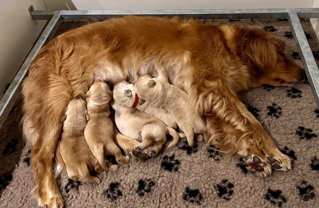 Cette belle portée dorée se compose de quatre femelles et un mâle
